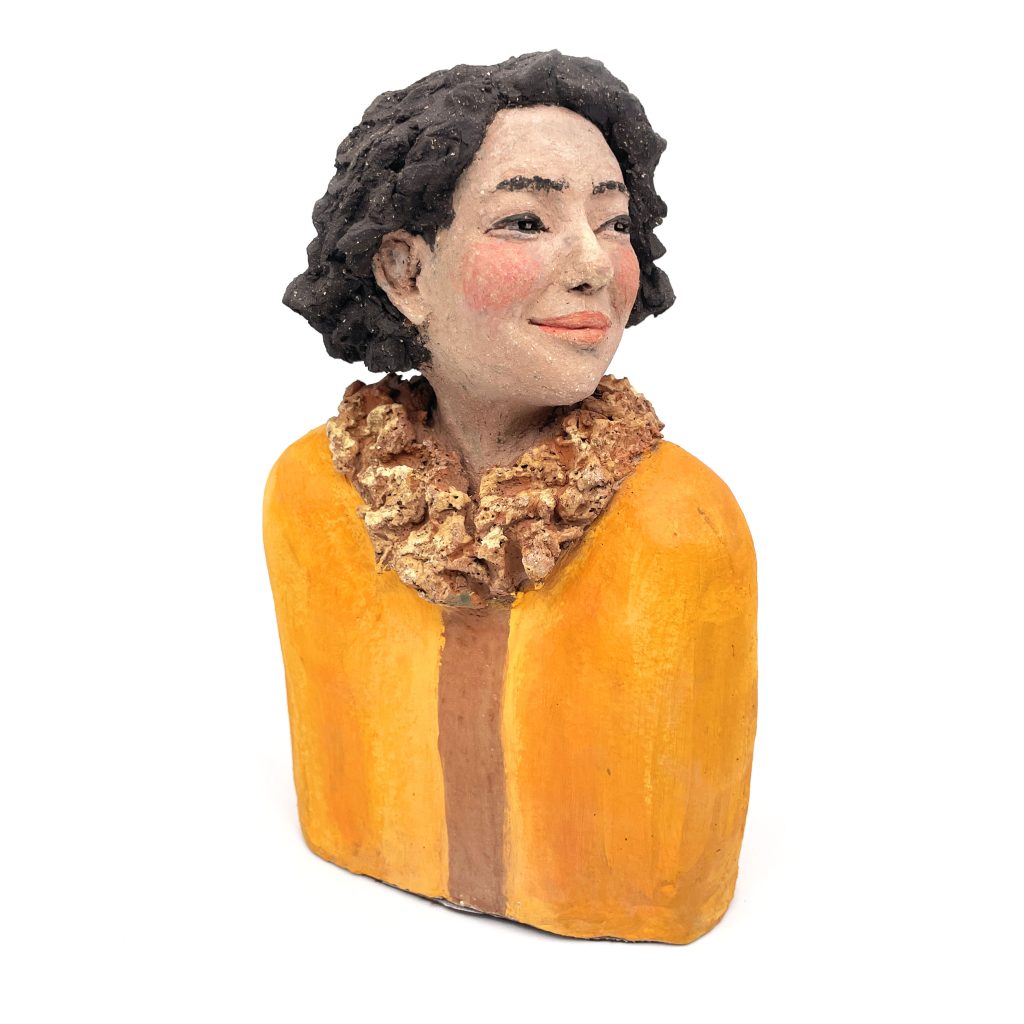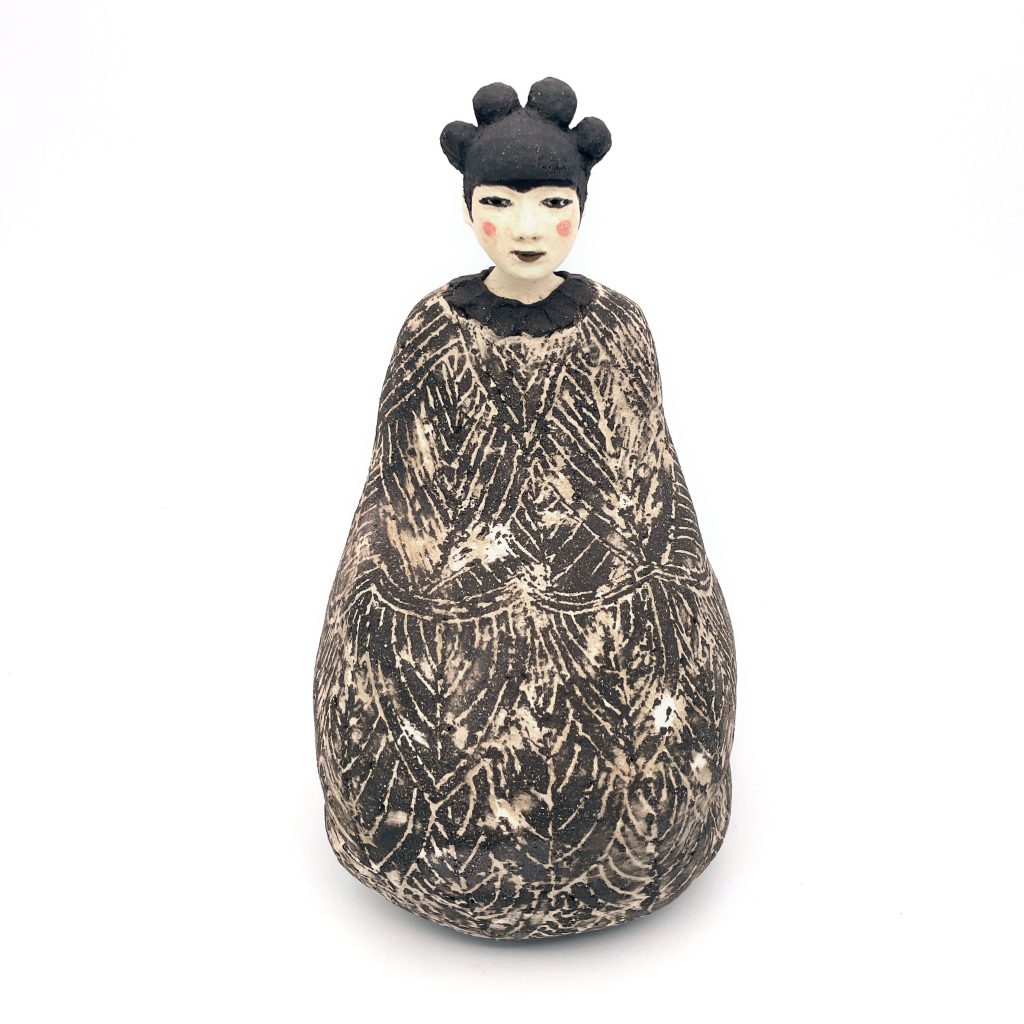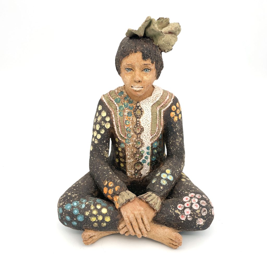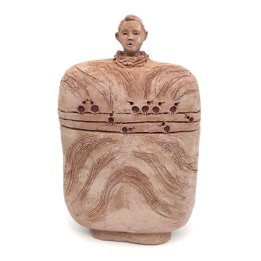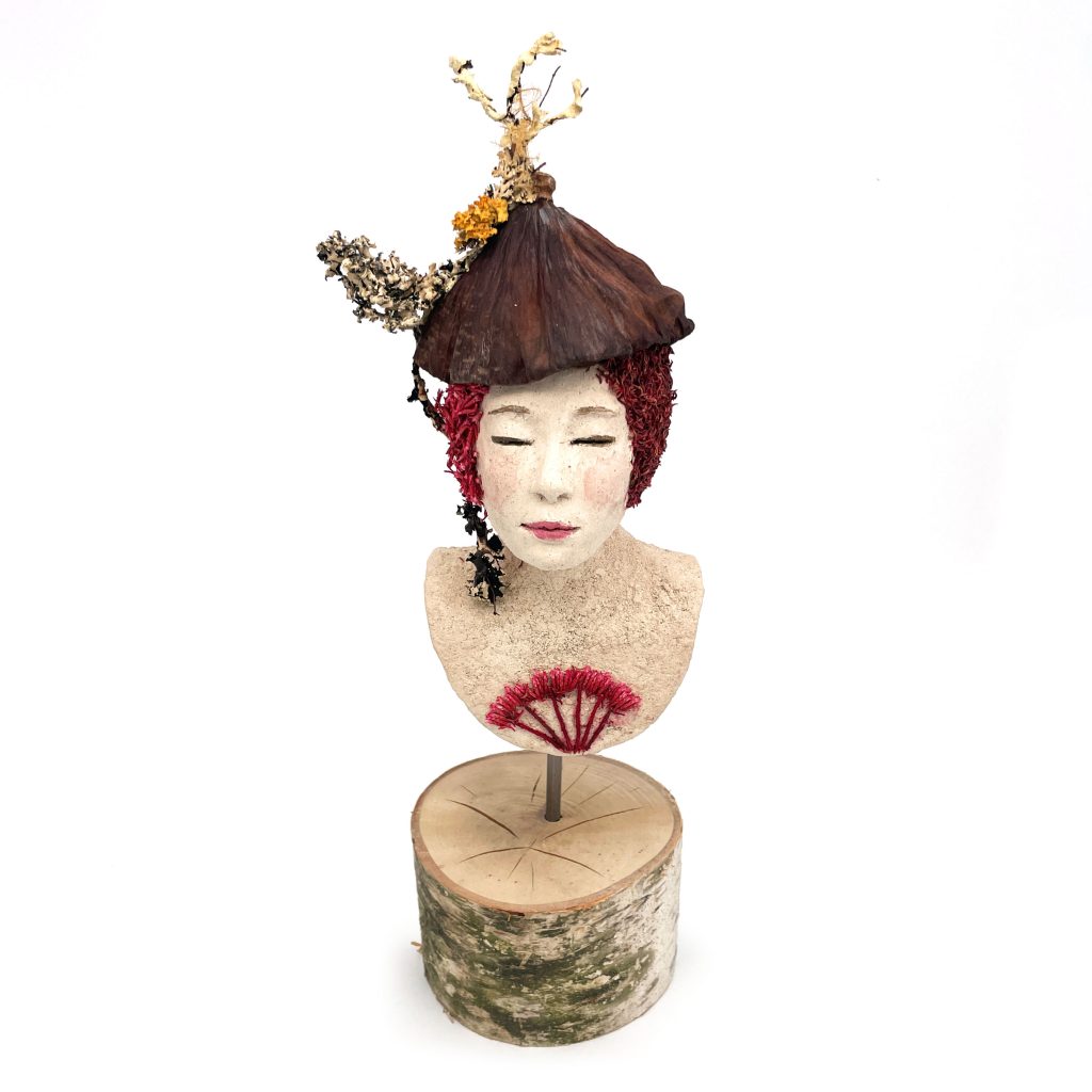 Je propose des sculptures en grès, colorées avec des engobes et cuites à 1200 degrés. Sur certaines de mes pièces j’ajoute des éléments glanés dans la nature, au fil de mon inspiration.
